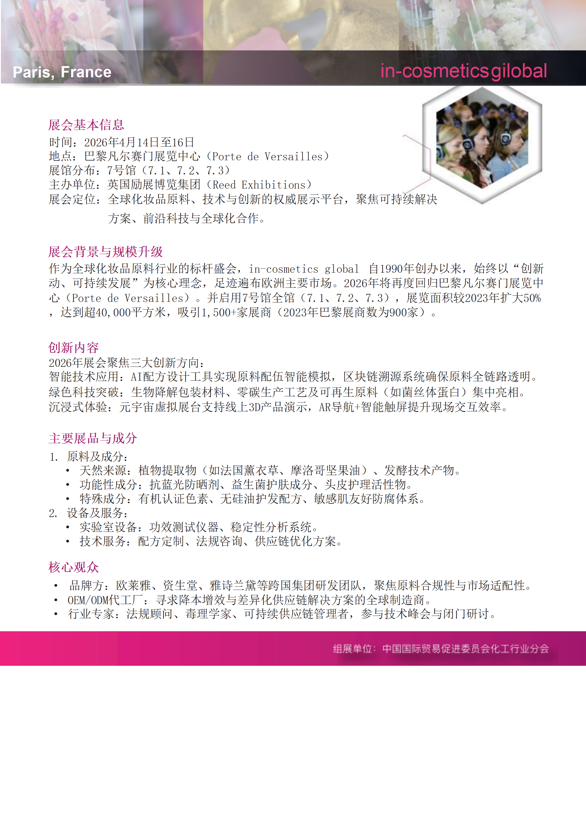 2026欧洲化妆品原料展览会(In-Cosmetics Global)