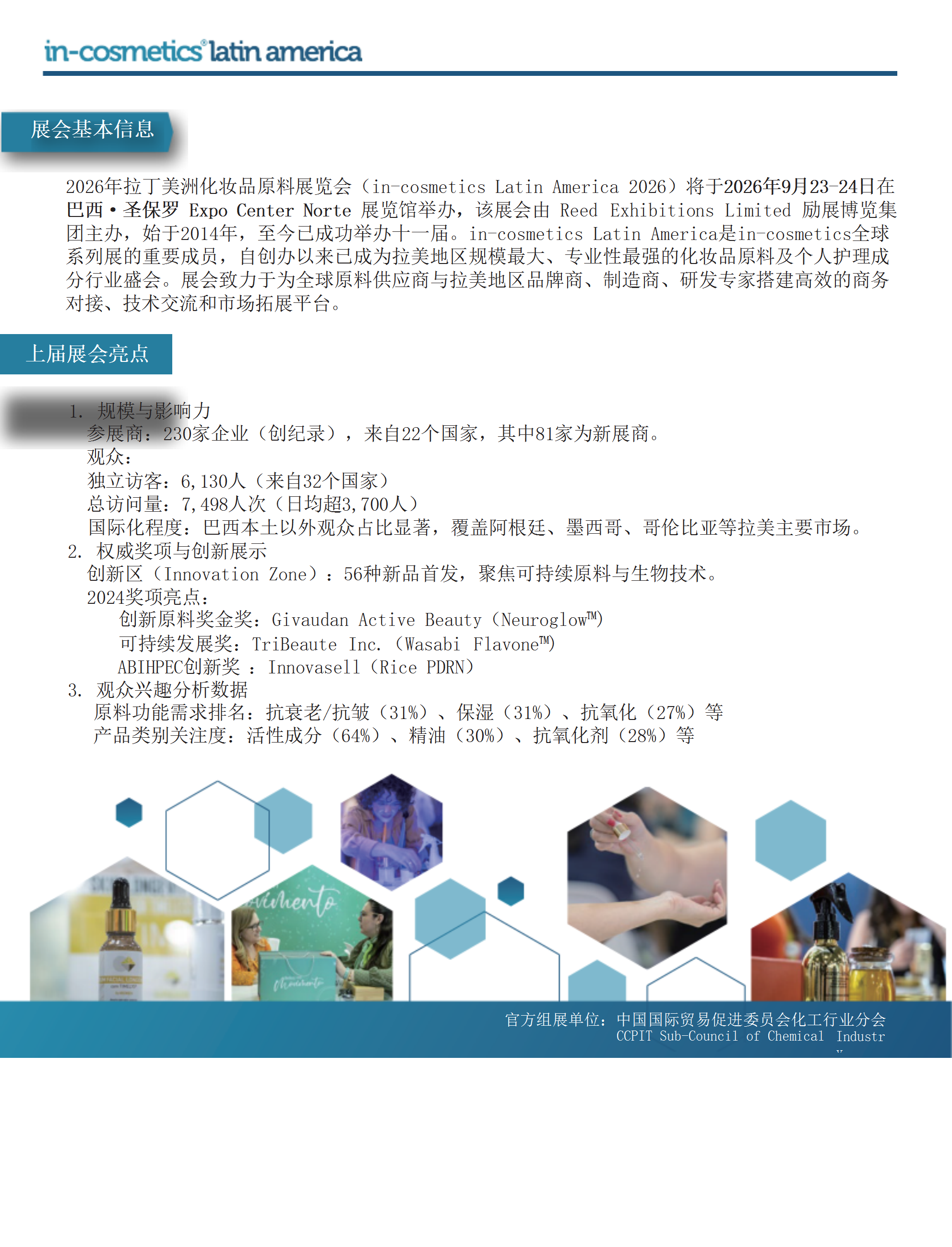 2026拉丁美洲化妆品原料展览会(in-Cosmetics Latin America)